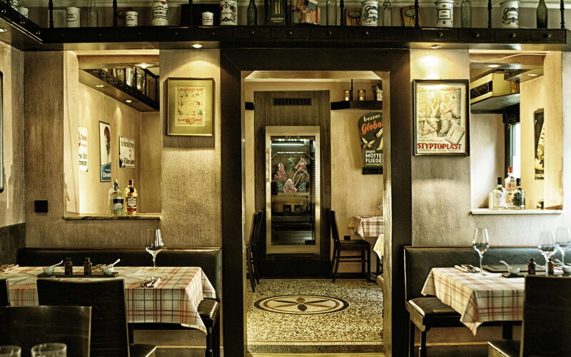 Die geschmackvolle über 110 Jahre alte Apotheken- Ausstattung aus dem Schwarzwald verleiht der "ampulle" im Stuttgarter Westen ihre ganz besondere Atmosphäre und lässt die Gäste sich in eine längst vergangene Zeit zurückversetzen.
